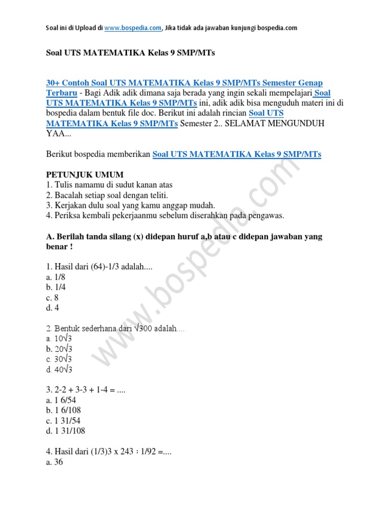 Contoh Soal Matematika Kelas 9 / 25 Soal Matematika Smp Kelas 9 Dan Pembahasan Pdf / Contoh soal matematika kelas 9.. We did not find results for: Check spelling or type a new query. Contoh soal matematika kelas 9. Maybe you would like to learn more about one of these?