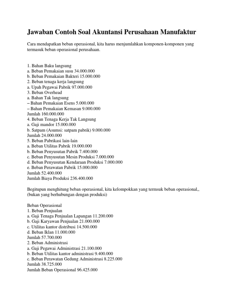 Contoh Soal Akuntansi Perusahaan Manufaktur Pdf Txt from html.pdfcookie.com Siklus akuntansi biaya dalam perusahaan manufaktur. Kunci jawaban soal akuntansi manufaktur klas 12 ak. Contoh soal perusahaan manufaktur akuntansi. « kapan qta mau mulai untuk bersyukur? Kegiatan khusus dalam perusahaan manufaktur adalah pengolahan bahan baku menjadi barang jadi. Contoh soal perusahaan manufaktur akuntansi. 60 menit kelas nama guru : Persediaan bahan baku berupa persediaan untuk proses produksi.
