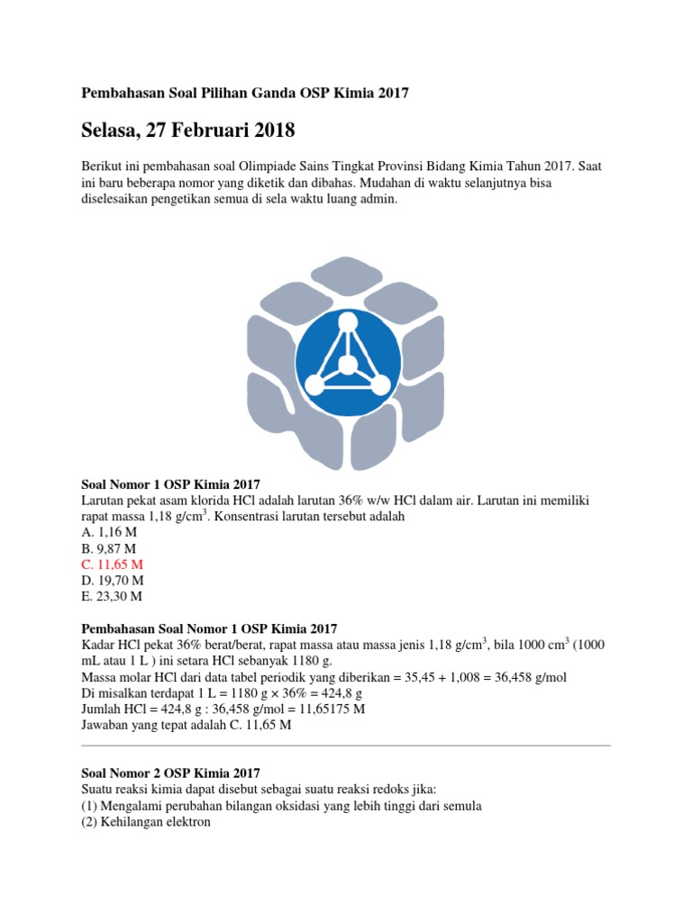 Soal Osp Kimia 2018 / Soal Osp Kimia 2018 Dan Pembahasan Informasi Pendidikan : Maybe you would like to learn more about one of these?. Check spelling or type a new query. We did not find results for: Maybe you would like to learn more about one of these?